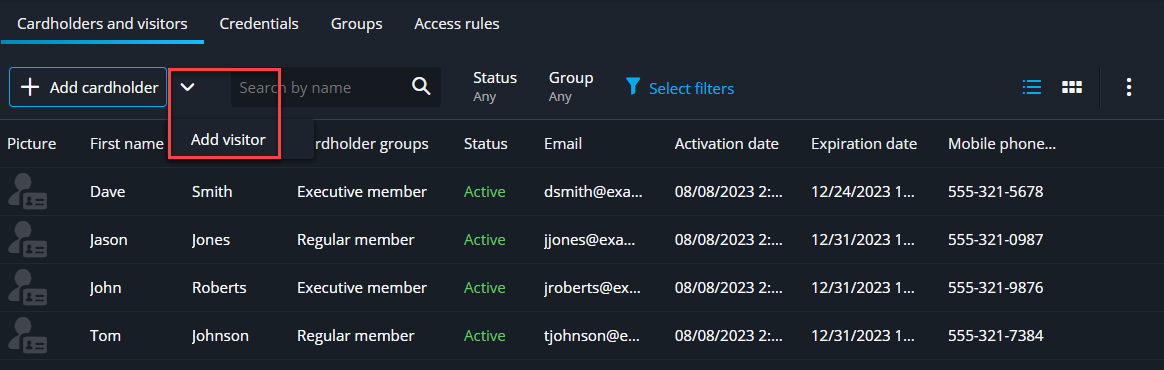 Um sicherzustellen, dass die Aktivitäten der Besucher während ihres gesamten Besuchs überwacht werden können, können Sie Besucher im Task Zutrittskontrolle von Genetec™ Operation Web hinzufügen.