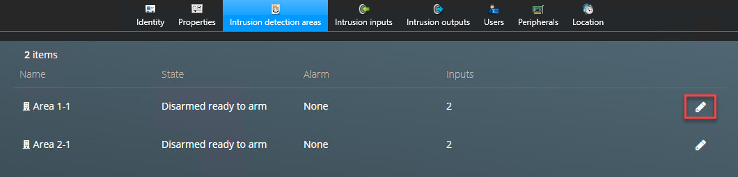 Klicken Sie auf die Schaltfläche „Bearbeiten“ für den Einbruchserkennungsbereich.