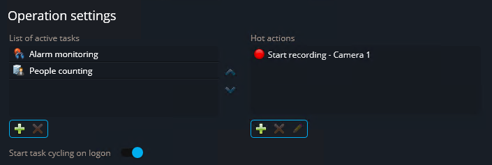 Um zu definieren, welche aktiven Tasks und Sofortaktionen den Benutzern zur Verfügung stehen, können Sie deren Betriebseinstellungen im Genetec™ Configuration Desktop konfigurieren.