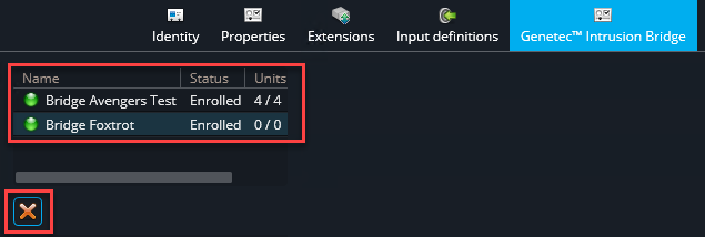 - Wählen Sie im Einheitenbrowser den Intrusion Manager aus, und klicken Sie auf die Registerkarte Genetec Intrusion Bridge.