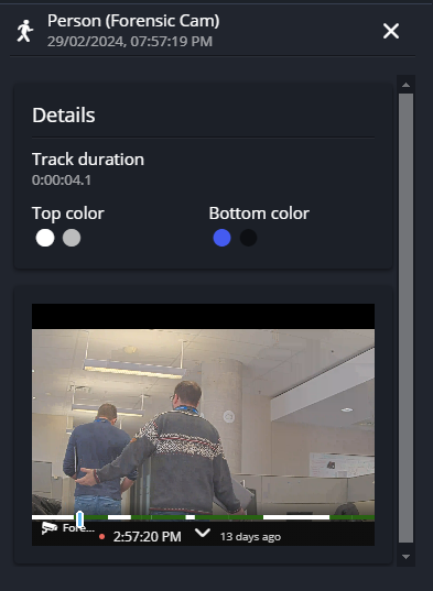 Wenn Sie Alle oder Person als Objekttyp auswählen, verwenden Sie den Filter Kleidung, um die Kleidungsfarbe der Person zu identifizieren.