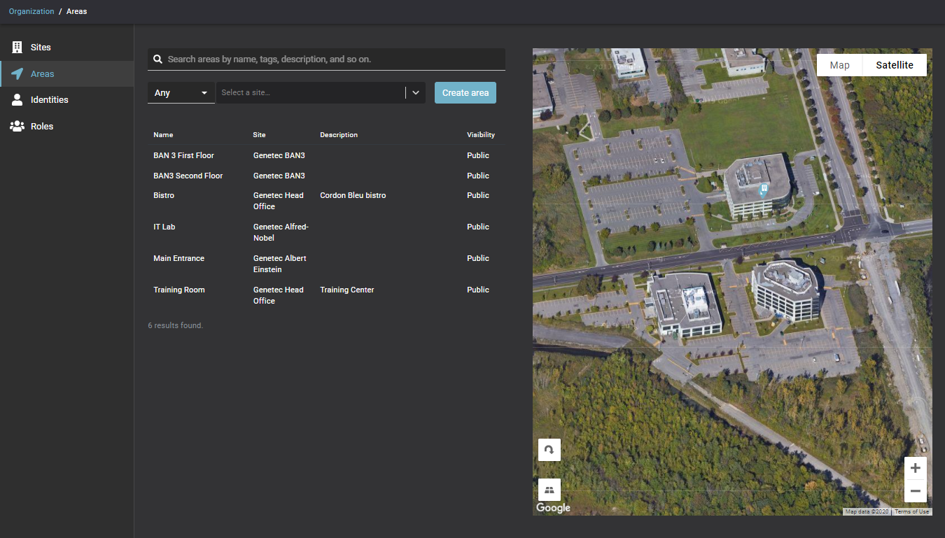 Nur Konto-Administratoren oder Standortinhaber können Bereiche in Genetec ClearID™ erstellen.