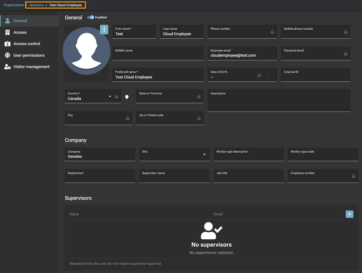 Um sicherzustellen, dass Karteninhaber beim Hinzufügen von Systemen korrekt ihren entsprechenden Identitäten in Genetec ClearID™ zugeordnet sind, stellen Sie sicher, dass alle Karteninhaber über eine gültige geschäftliche E-Mail-Adresse verfügen.