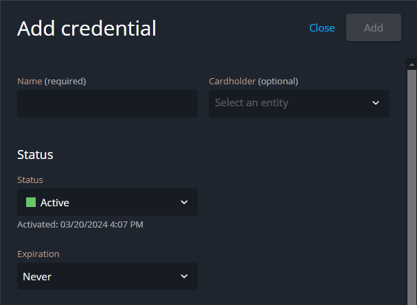 Para permitir que los tarjetahabientes o visitantes accedan a áreas seguras, debe agregar credenciales a su perfil.