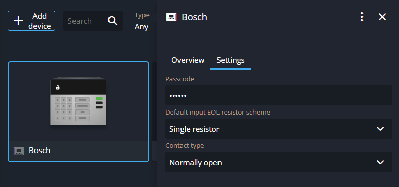 Desde la página de Dispositivos en Genetec™ Configuration web, haga clic en un panel de Bosch.