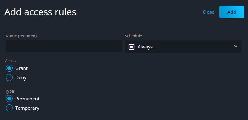 Cree horarios para aplicar las reglas de acceso.