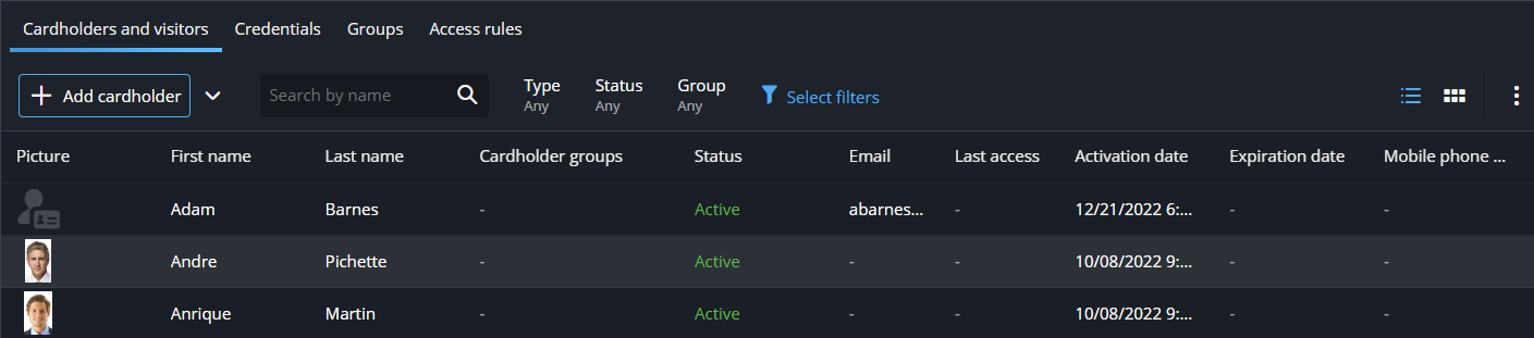 Si el perfil de un tarjetahabiente o visitante requiere revisiones, puede realizar y guardar los cambios en Genetec™ Operation web.