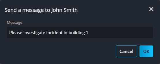 En mapas georreferenciados en la tarea de Mapas de Genetec™ Operation web, puede ver la ubicación de los usuarios móviles de Genetec Operation, enviarles mensajes y ver videos desde sus teléfonos móviles.