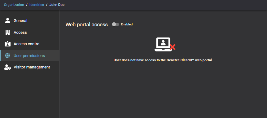 Pour qu'un administrateur puisse accéder au portail Web Genetec ClearIDMC, vous devez lui accorder les autorisations d'accès nécessaires.