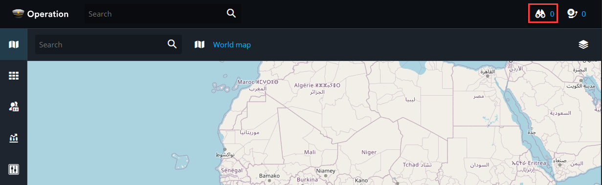 ) in het meldingenvak. - Het pictogram Watchlist geeft het aantal gemiste gebeurtenissen weer sinds het zijpaneel voor het laatst werd gesloten. Er kunnen maximaal 250 gebeurtenissen worden weergegeven. Wanneer het paneel Watchlist wordt geopend, wordt het vaknummer teruggezet naar nul.