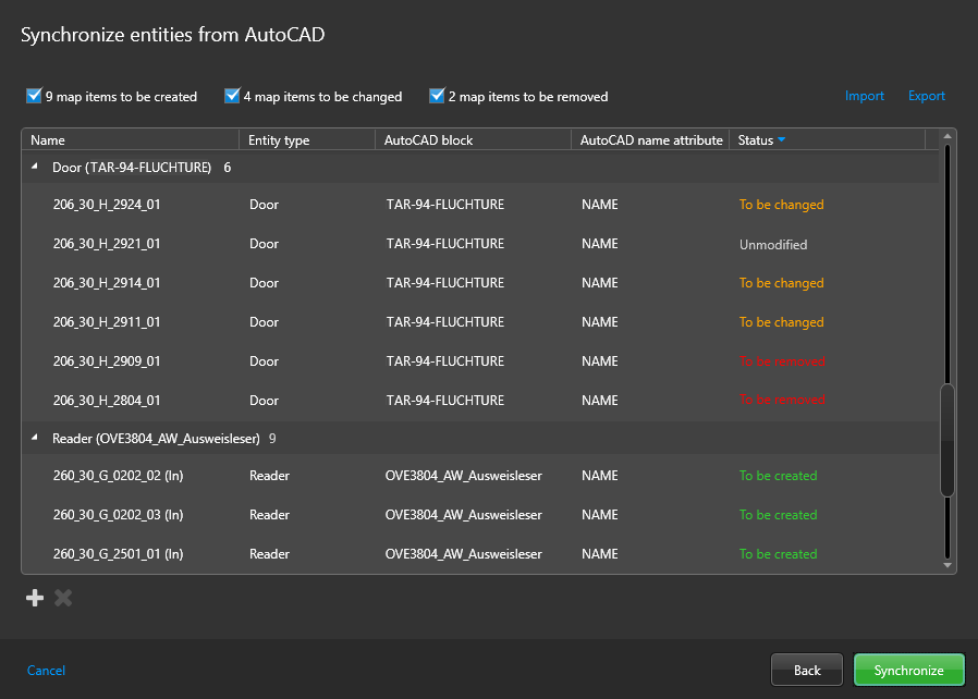 > Synchronize entities from AutoCAD.